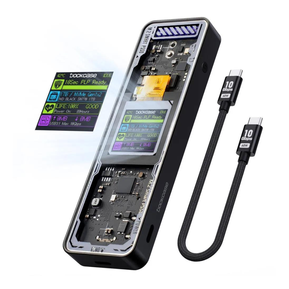 - The DockCase Explorer Edition Smart M.2 NVMe SSD Enclosure Pro redefines the standards for external storage solutions. Combining sleek design with cutting-edge technology, this enclosure offers unparalleled performance, convenience, and data protection.