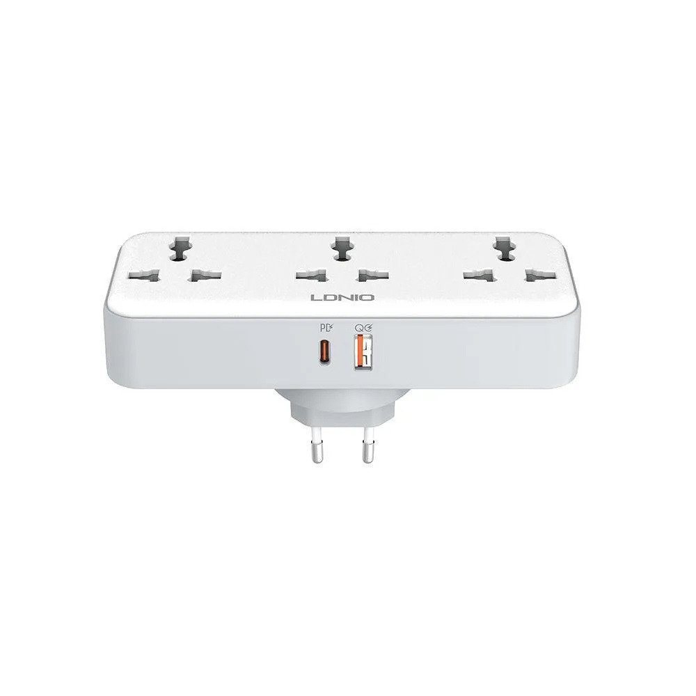 - One device with 3 outlets & 2 USB ports which can charge for multiple devices simultaneously.