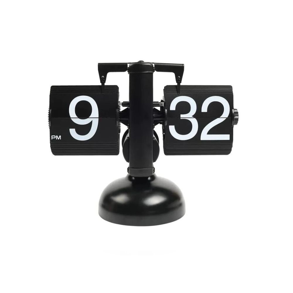 - Crafted with precision, this premium flip desk clock boasts a 12-hour AM/PM format, featuring a unique flip-down minute and hour display. The single knob adjustment next to the minute display ensures easy readability, and the high-quality quartz movement guarantees accurate timekeeping without any audible noise. The combination of a painted 304 stainless steel frame and environmentally friendly ABS cards results in a durable and fashionable timepiece.