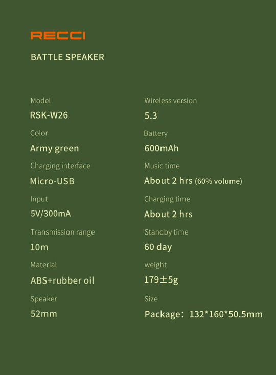 - Charging Input: 5V 300mAh